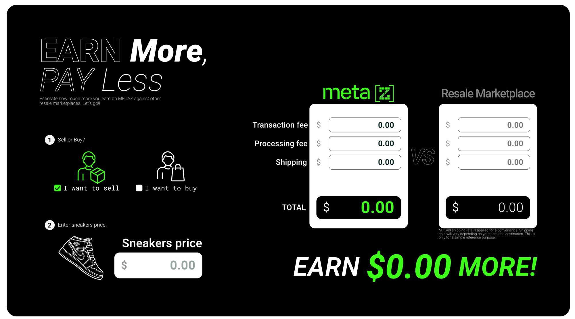 With METAZ, buyers pay zero fees. What you see is what you pay. No hidden charges, no VAT, no border headaches. That makes sneakers more affordable — and increases conversion rates for sellers too.