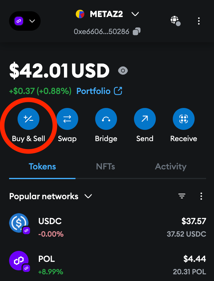 - Fund your wallet with POL (Polygon’s native token, also known as MATIC) for gas fees: