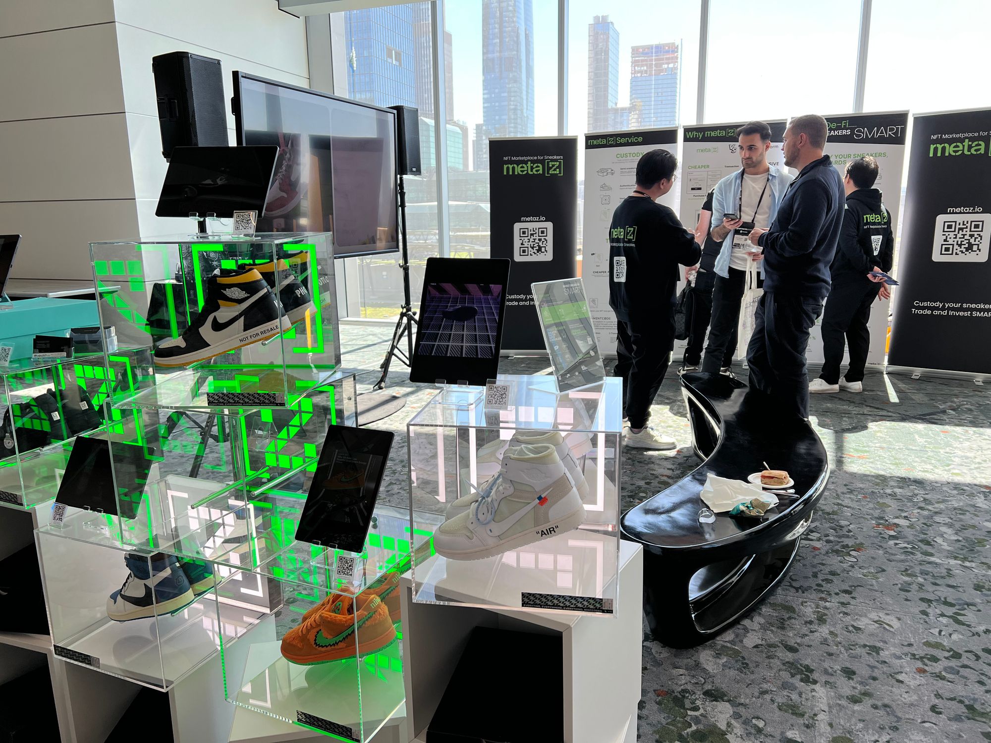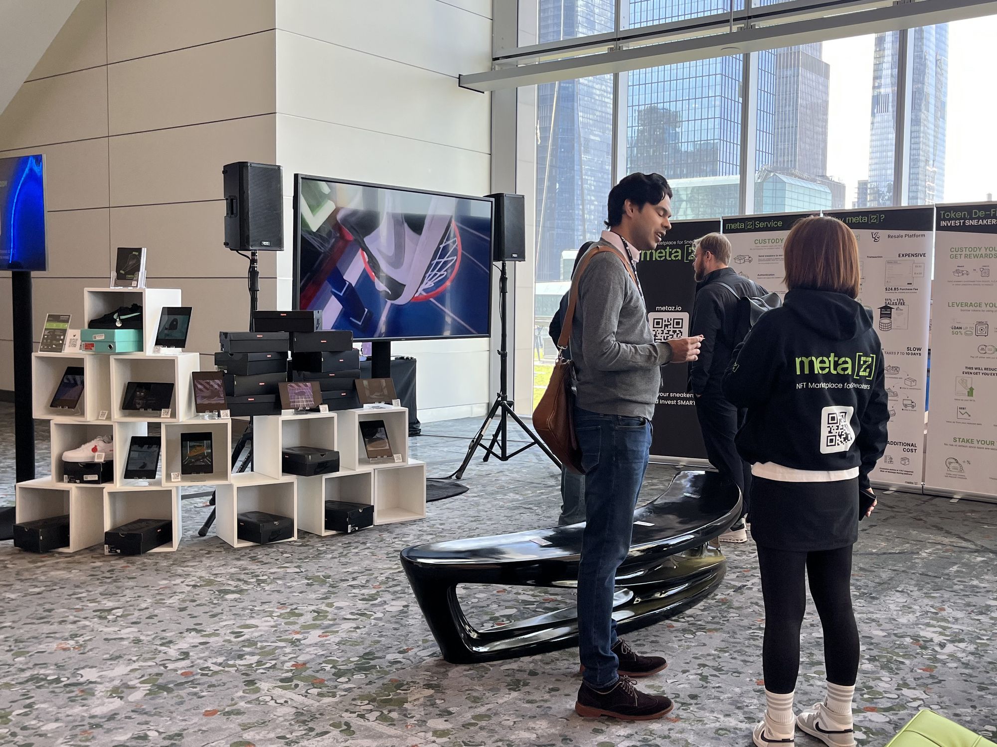 meta[Z]’s exhibition venue was on a platinum spot. It also quickly became a hot spot where many visitors were drawn by the rare sneakers displayed in cool led boxes and the informative setups. Visitors learned how the physical sneakers are valuable assets and meta[Z] solved the pain point in investing in sneakers via the custody and NFT minting services. Among the visitors, number of them were sneaker-head and they grasped the service model at a glance and the suggested De-Fi model.