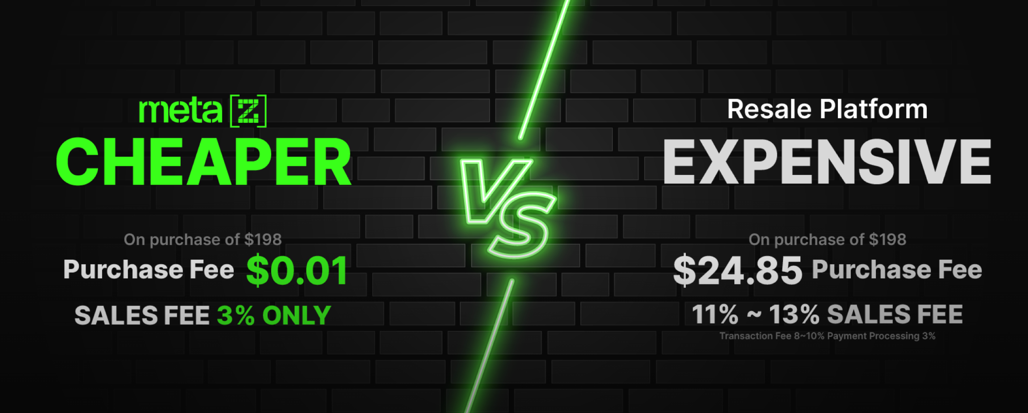 Traditional platforms extract 10-19% in seller fees. METAZ charges 3%. On a $200 sneaker:
