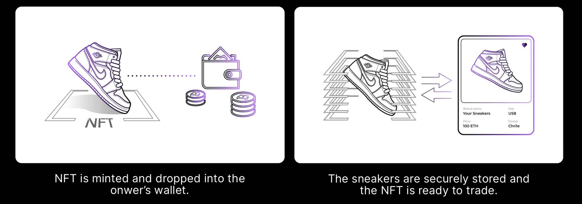 Upon successful authentication, a non-fungible token (NFT) with immutable metadata is minted on the blockchain and dropped to your wallet. This digital proof of ownership allows you to seamlessly trade your sneakers as NFTs.